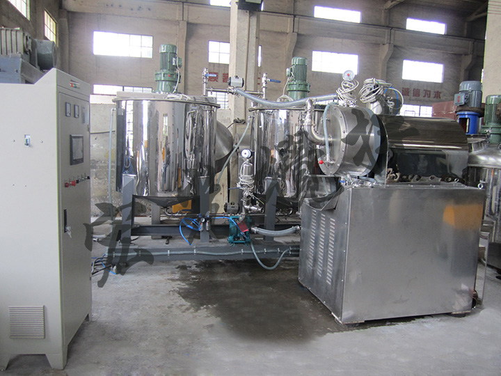 加料泵将预分散的材料送人研磨桶,研磨筒内装有研磨介质,磨细后的物料经动态分离器排出,视产品细度不同,可采用单台连续或多台串联连续研磨工艺。